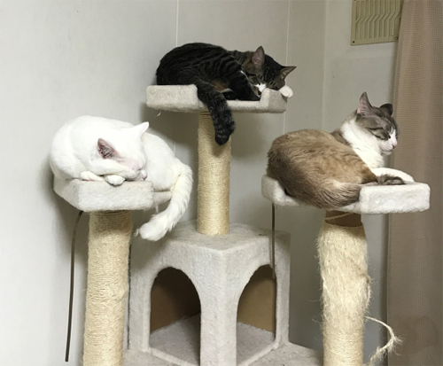 高いところが好きなネコちゃんのために、運動不足回避の意味もかねて、キャットタワーを用意しましょう。ネコちゃんのストレス発散にもなります。
